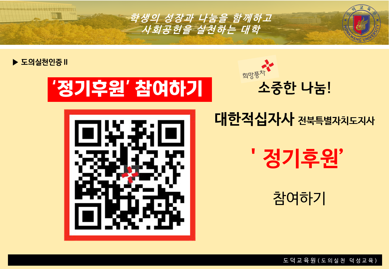 소중한 (기부 활동)_대한적십자사 정기후원 참여(가입) #’사회공헌실천인증제’ 운영 문의 : 도덕교육원 ‘도의실천 덕성교육’(인성교육센터) 063 – 850 – 7014 #대한적십자 전북특별자치도지사 후원 관련 문의 : 063-280-5821